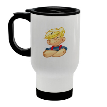 Dennis the Menace, Stainless steel travel mug with lid, double wall white 450ml