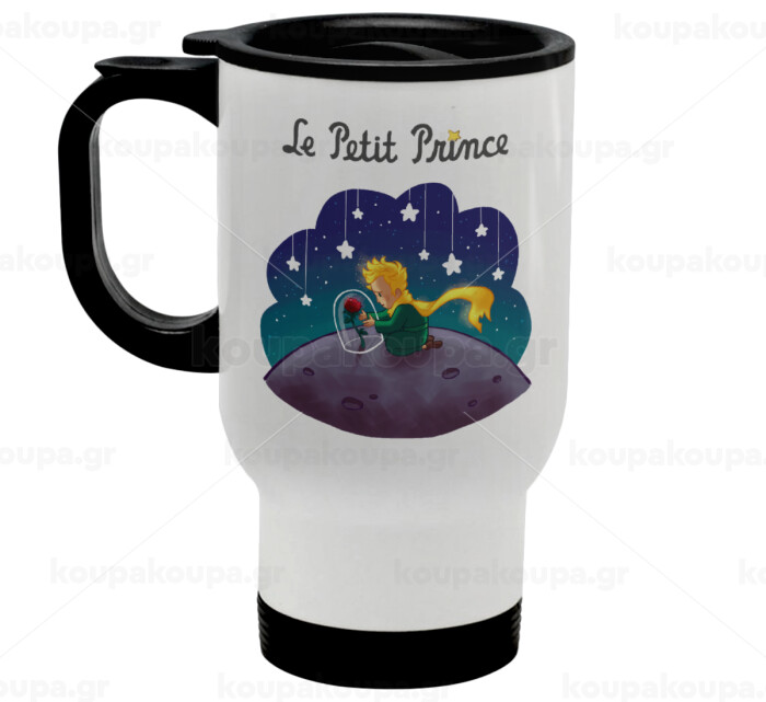 Little prince, Stainless steel travel mug with lid, double wall white 450ml