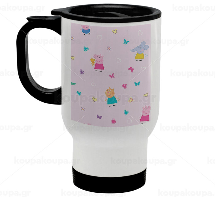 Πέππα το γουρουνάκι και οι φίλοι της, Stainless steel travel mug with lid, double wall white 450ml