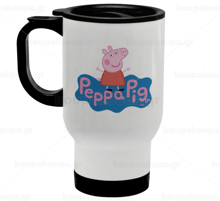Πέππα το γουρουνάκι μπλε με όνομα, Stainless steel travel mug with lid, double wall white 450ml