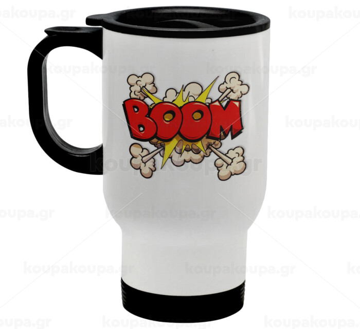 BOOM!!!, Stainless steel travel mug with lid, double wall white 450ml