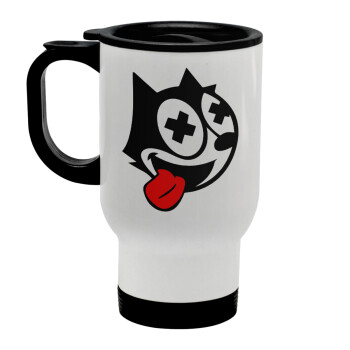 helix the cat, Stainless steel travel mug with lid, double wall white 450ml