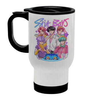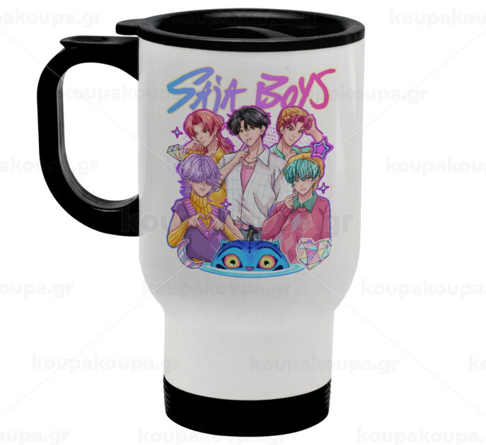 Huntrix Saja Boys, Stainless steel travel mug with lid, double wall white 450ml