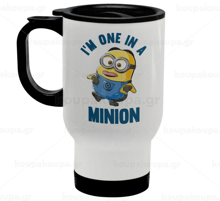I'm one in a minion, Stainless steel travel mug with lid, double wall white 450ml
