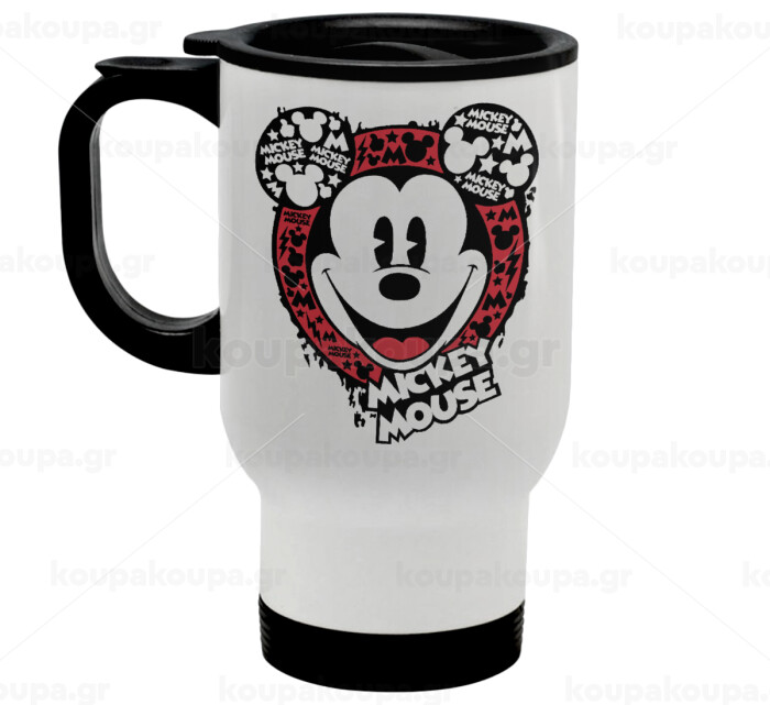 Mickey Mouse, Stainless steel travel mug with lid, double wall white 450ml
