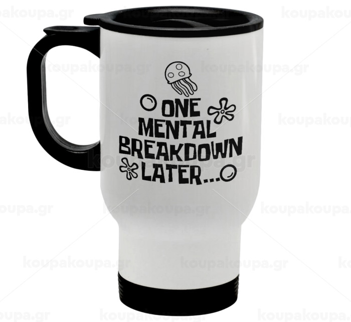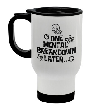 one mental breakdown later bob spongebob, Stainless steel travel mug with lid, double wall white 450ml