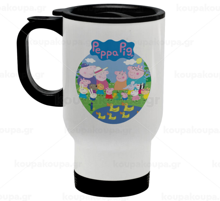 Peppa pig Family, Stainless steel travel mug with lid, double wall white 450ml