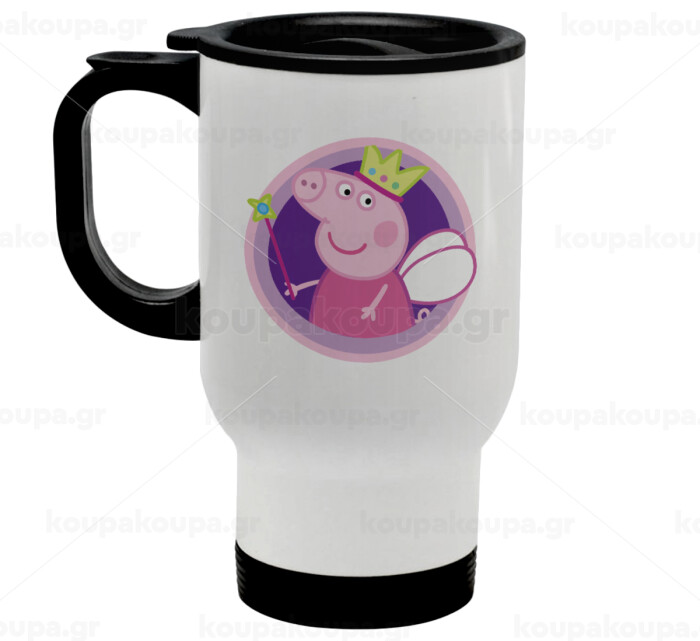 Peppa pig Queen, Stainless steel travel mug with lid, double wall white 450ml