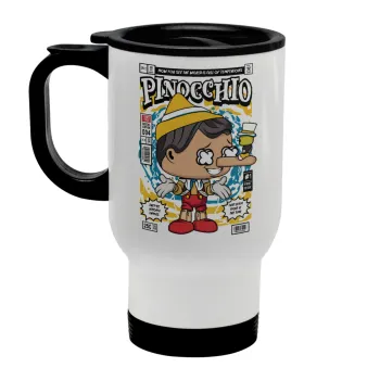 Pinocchio, Stainless steel travel mug with lid, double wall white 450ml