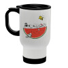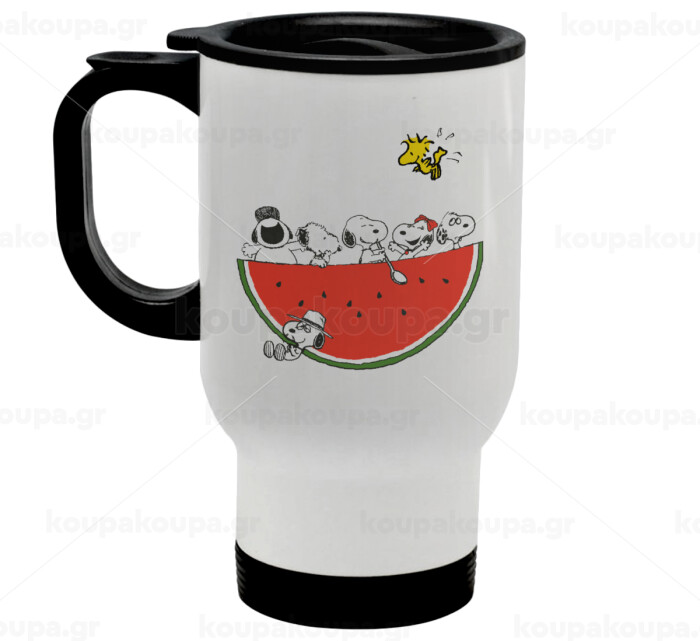Snoopy summer, Stainless steel travel mug with lid, double wall white 450ml