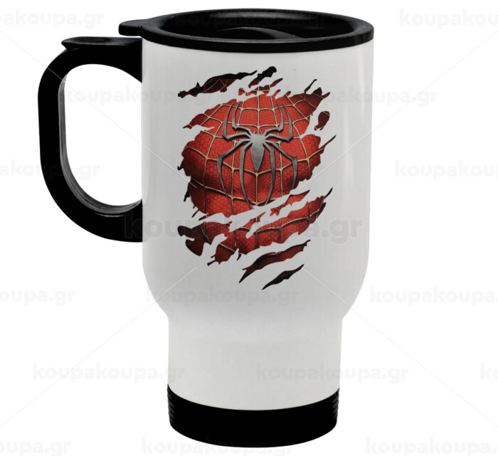Spiderman cracked, Stainless steel travel mug with lid, double wall white 450ml