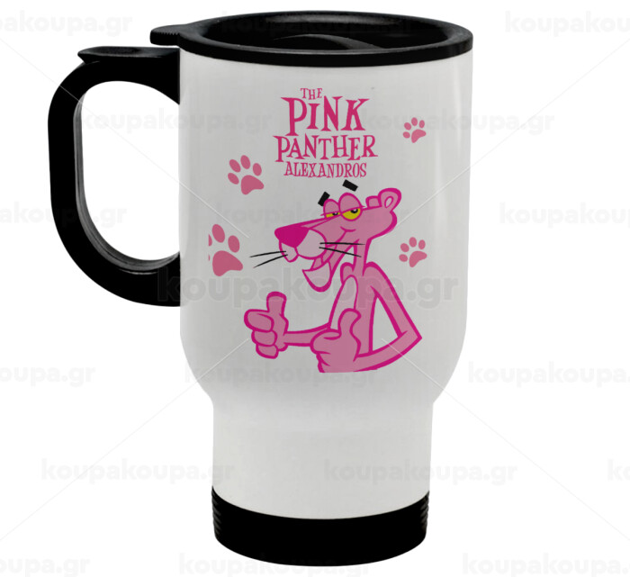 The pink panther, Stainless steel travel mug with lid, double wall white 450ml