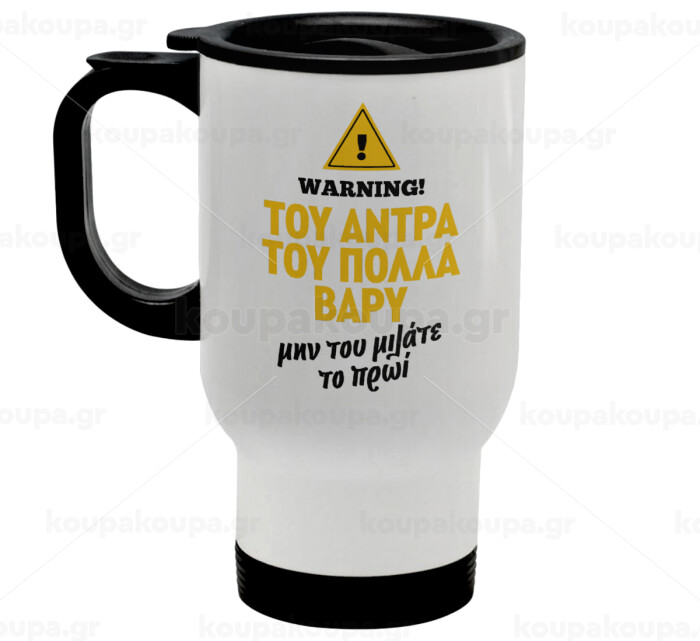 Του άντρα του πολλά βαρύ, Stainless steel travel mug with lid, double wall white 450ml