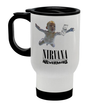 Nirvana nevermind, Stainless steel travel mug with lid, double wall white 450ml