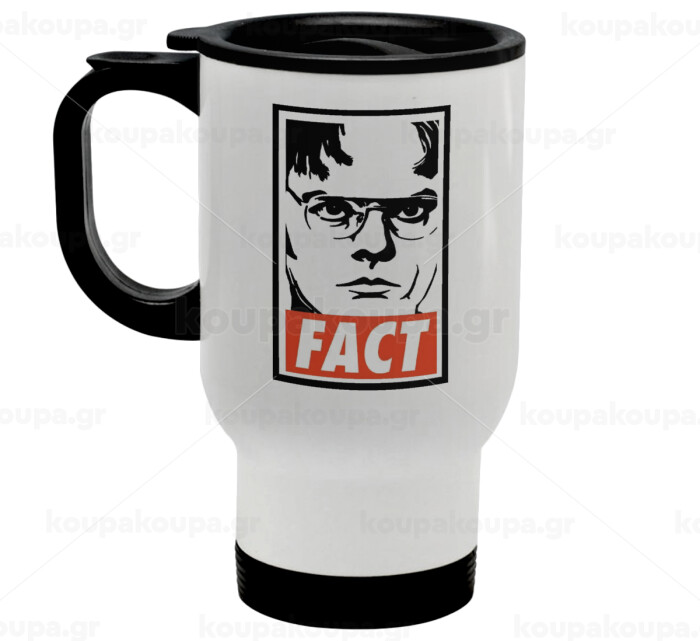 Dunder Mifflin FACT, Stainless steel travel mug with lid, double wall white 450ml