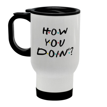 Friends How You Doin'?, Stainless steel travel mug with lid, double wall white 450ml