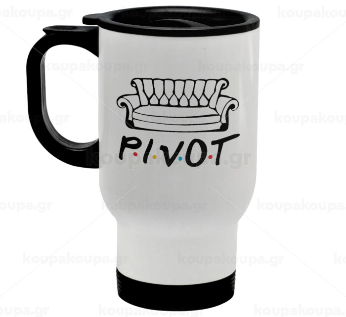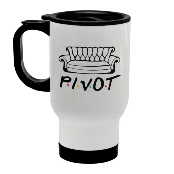 Friends Pivot, Stainless steel travel mug with lid, double wall white 450ml