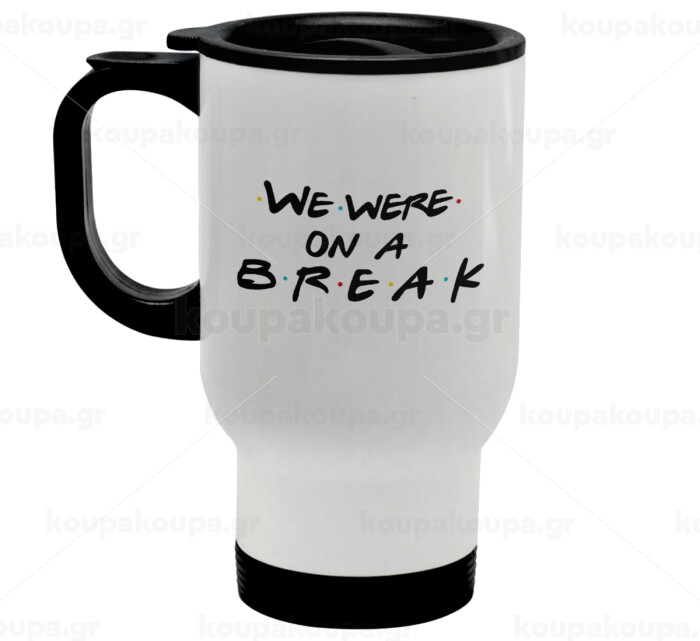 Friends we were on a break, Stainless steel travel mug with lid, double wall white 450ml