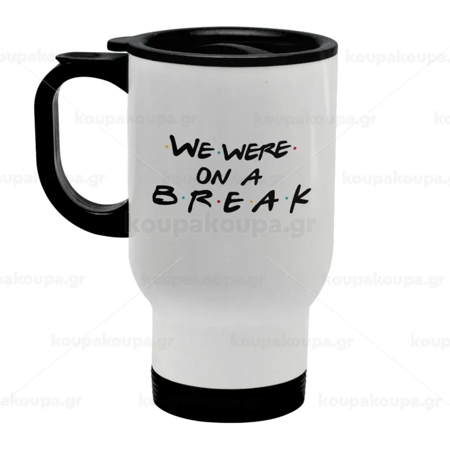 Friends we were on a break, Stainless steel travel mug with lid, double wall white 450ml