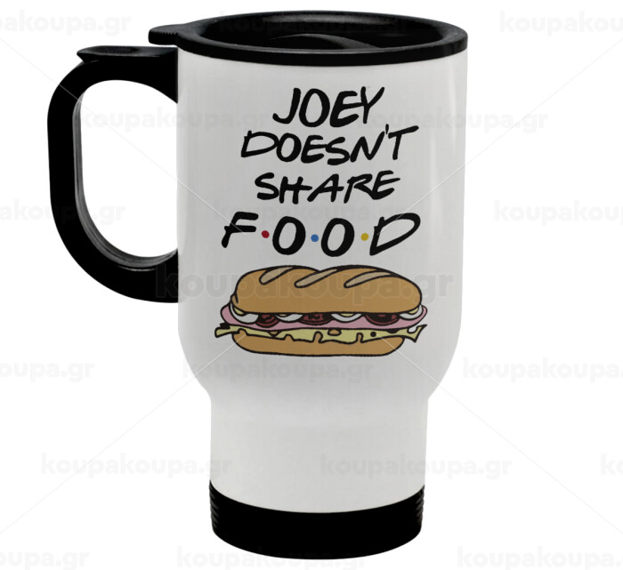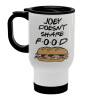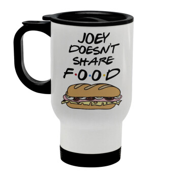 Joey Doesn't Share Food, Stainless steel travel mug with lid, double wall white 450ml