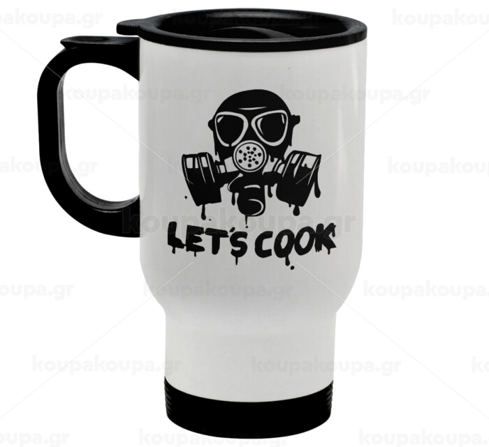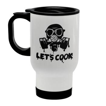 Let's cook mask, Stainless steel travel mug with lid, double wall white 450ml
