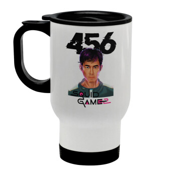 Squid game 456 Gi-Hun, Stainless steel travel mug with lid, double wall white 450ml