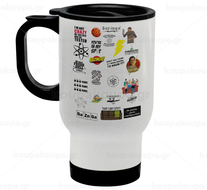 The Big Bang Theory pattern, Stainless steel travel mug with lid, double wall white 450ml
