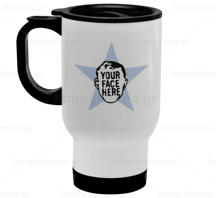 The office star CUSTOM, Stainless steel travel mug with lid, double wall white 450ml
