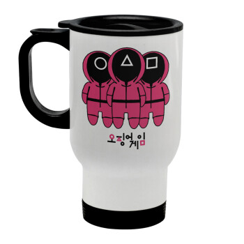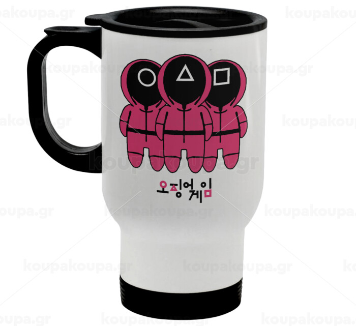 The squid game, Stainless steel travel mug with lid, double wall white 450ml