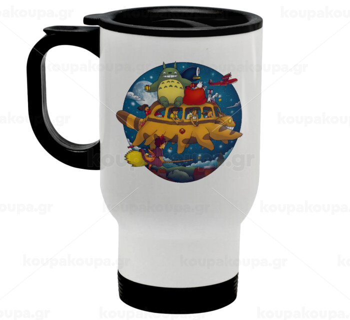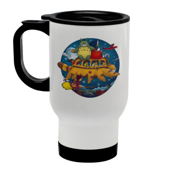 Totoro Catbus, Stainless steel travel mug with lid, double wall white 450ml