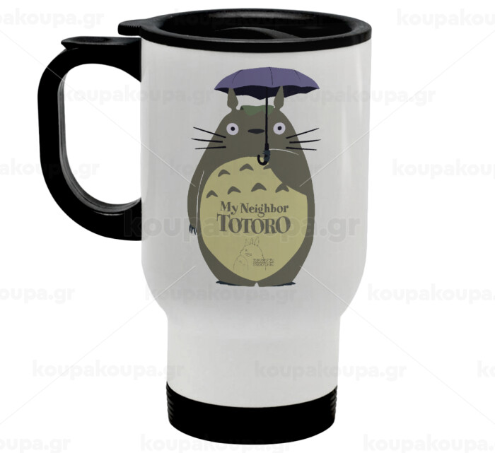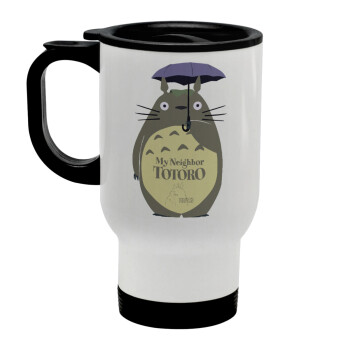 Totoro from My Neighbor Totoro, Stainless steel travel mug with lid, double wall white 450ml