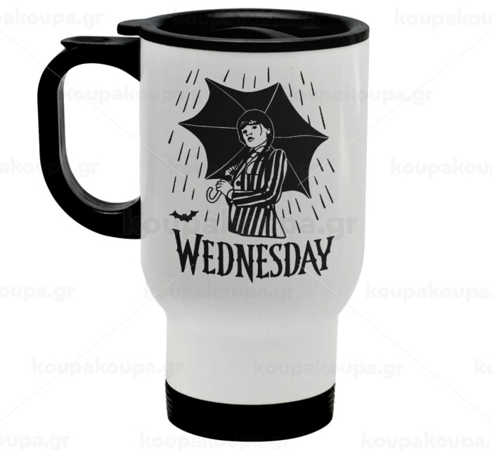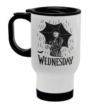 Wednesday Addams, Stainless steel travel mug with lid, double wall white 450ml