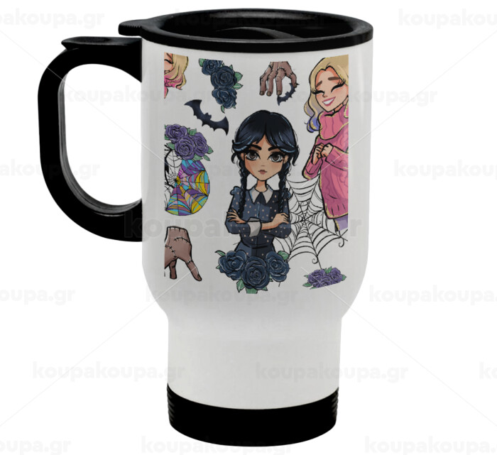 Wednesday and Enid Sinclair, Stainless steel travel mug with lid, double wall white 450ml