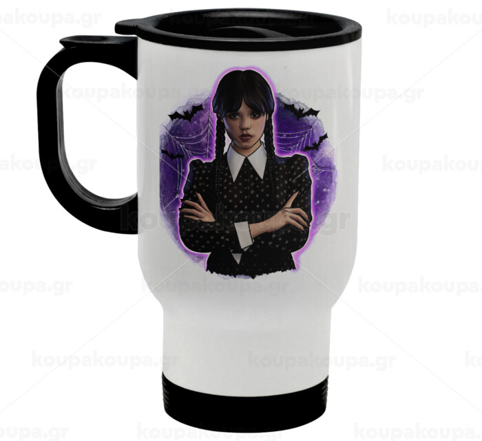 Wednesday moonlight, Stainless steel travel mug with lid, double wall white 450ml
