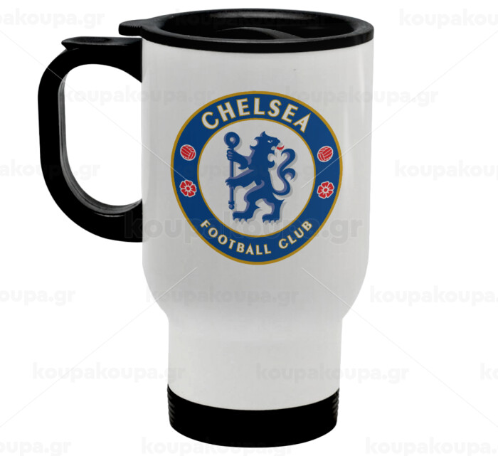 FC Chelsea, Stainless steel travel mug with lid, double wall white 450ml
