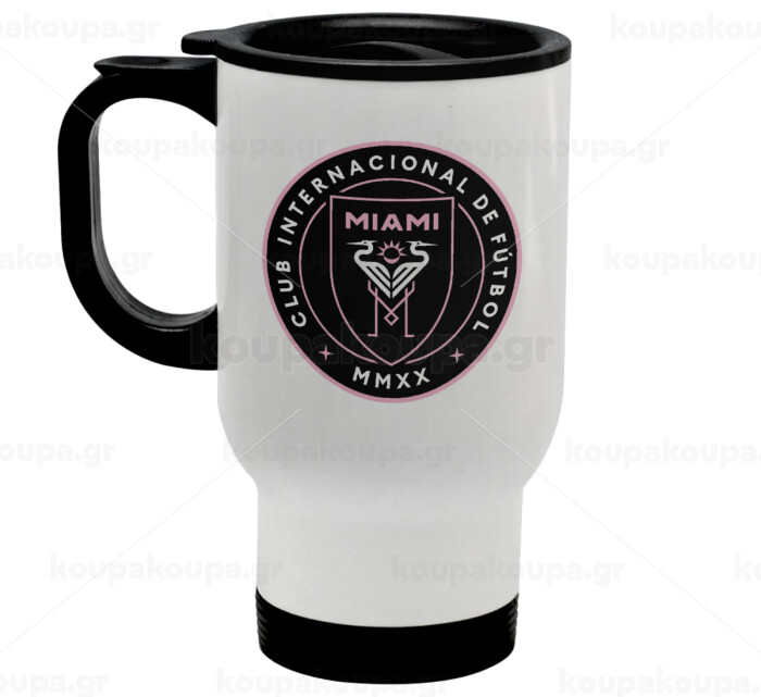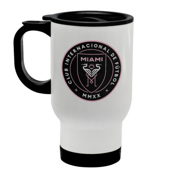 Inter Miami CF, Stainless steel travel mug with lid, double wall white 450ml