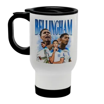 Jude Bellingham, Stainless steel travel mug with lid, double wall white 450ml