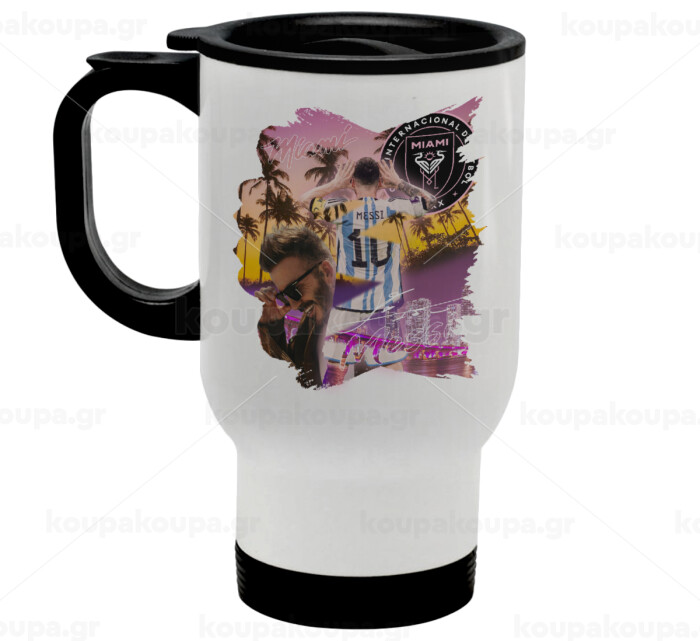 Lionel Messi Miami, Stainless steel travel mug with lid, double wall white 450ml