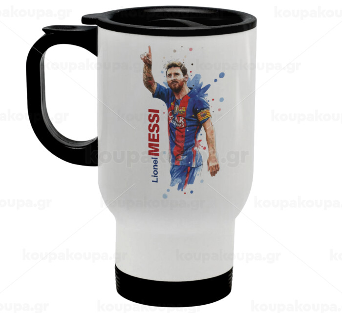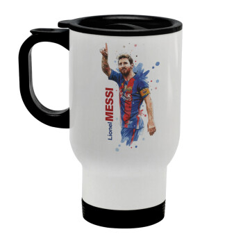 Lionel Messi, Stainless steel travel mug with lid, double wall white 450ml