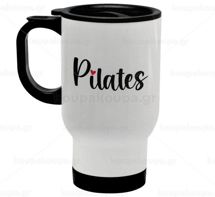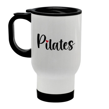 Pilates love, Stainless steel travel mug with lid, double wall white 450ml