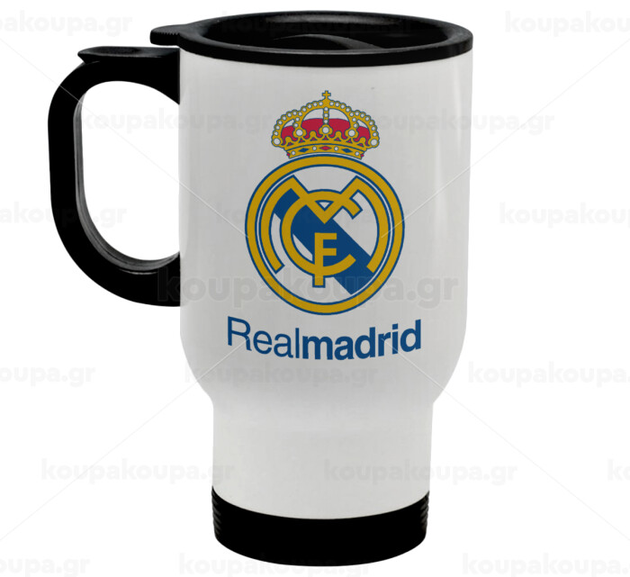 Real Madrid CF, Stainless steel travel mug with lid, double wall white 450ml