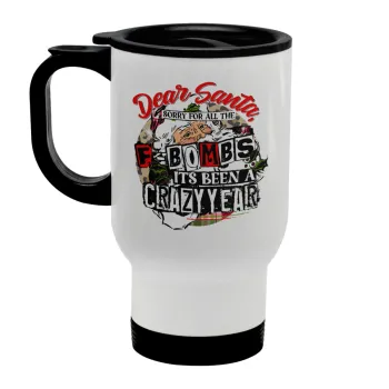 Dear Santa, sorry for all the F-bombs, Stainless steel travel mug with lid, double wall white 450ml
