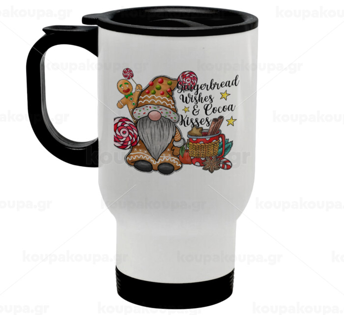 Gingerbread Wishes, Stainless steel travel mug with lid, double wall white 450ml