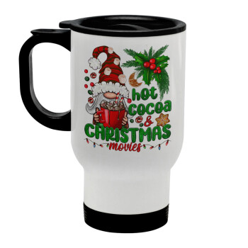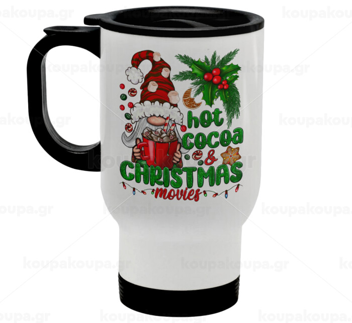 Hot cocoa and Christmas movies, Stainless steel travel mug with lid, double wall white 450ml
