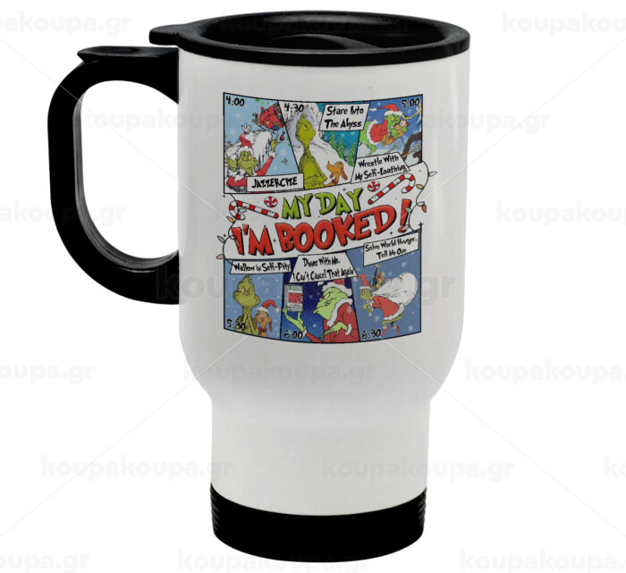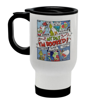 My Day Grinch, Stainless steel travel mug with lid, double wall white 450ml