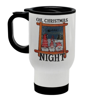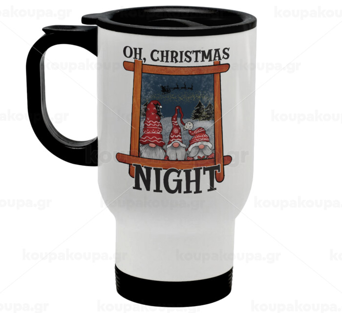 Oh Christmas Night, Stainless steel travel mug with lid, double wall white 450ml