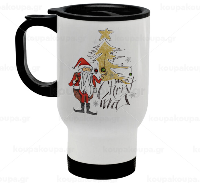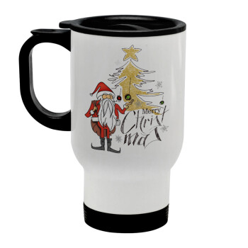 Santa Claus gold, Stainless steel travel mug with lid, double wall white 450ml
