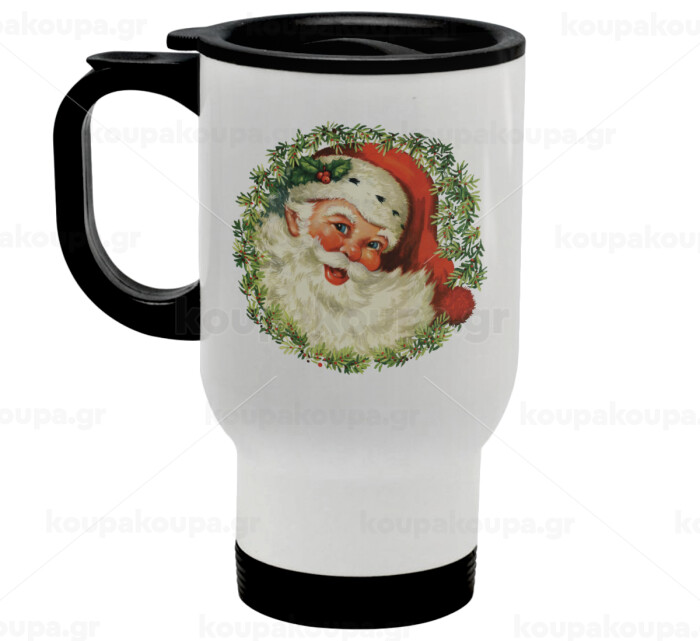 Santa Claus, Stainless steel travel mug with lid, double wall white 450ml