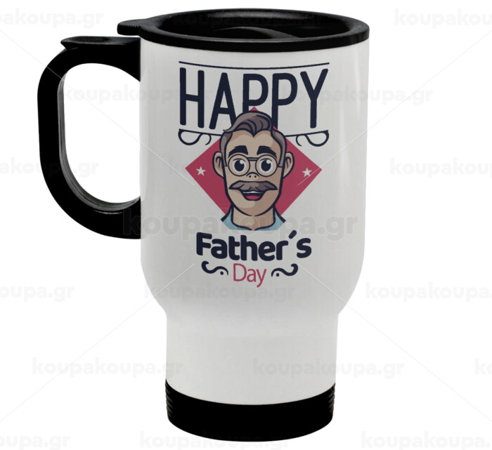 Για την γιορτή του μπαμπά!, Stainless steel travel mug with lid, double wall white 450ml
