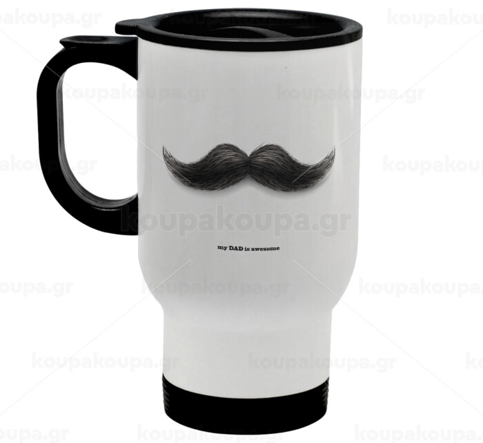 Ο καλύτερος μουστακαλής του κόσμου!!!, Stainless steel travel mug with lid, double wall white 450ml